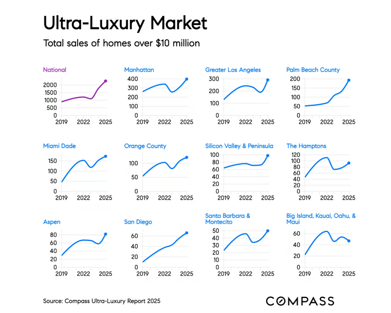 Lifestyle, privacy, and wealth preservation in a world of uncertainty. Compass's 2025 Ultra-Luxury Report found 2,261 homes sold for $10M or more nationally last year, generating $38.6 billion in sales — up 31% — with Snowmass specifically named as an emerging ultra-luxury destination. These buyers are not chasing appreciation. They are buying lifestyle, privacy, and a tangible place to anchor wealth when financial assets feel uncertain.